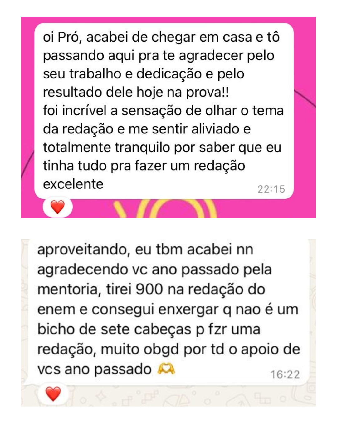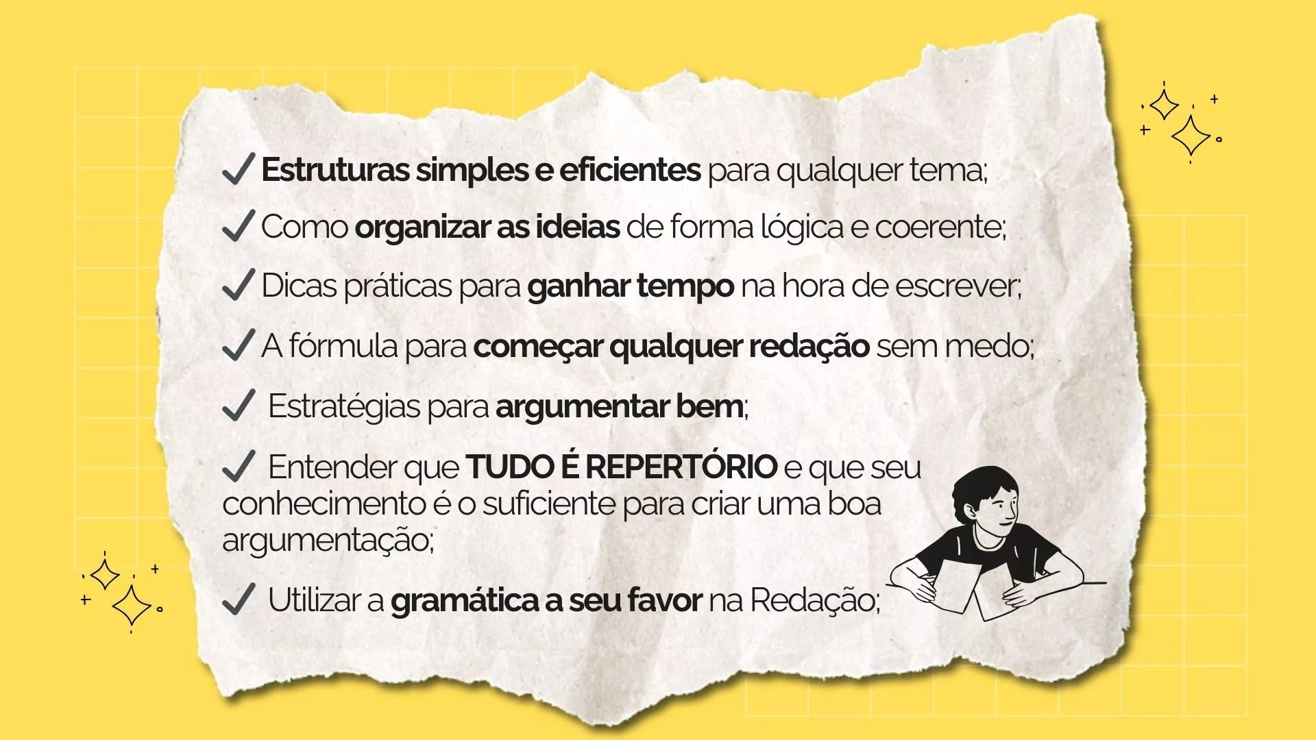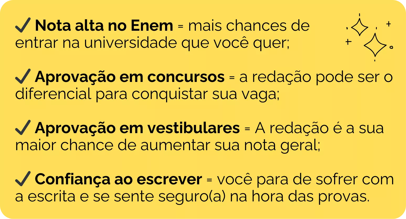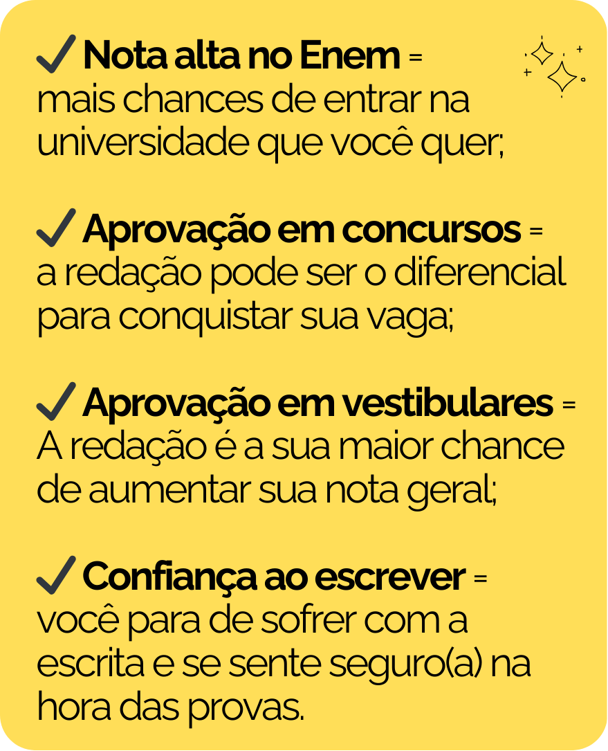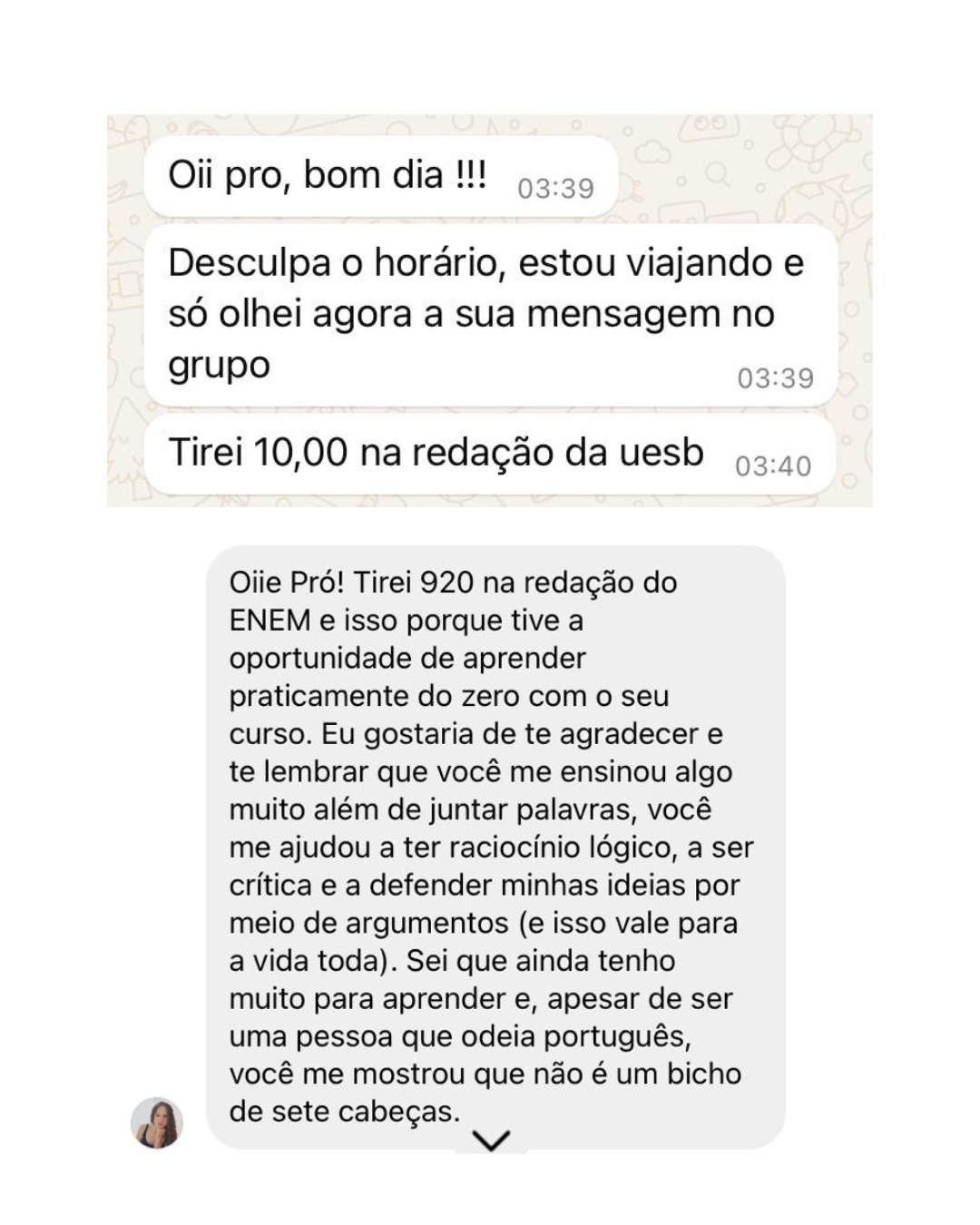 Se você concluir 100% do curso, treinar redações constantemente e não evoluir, entre em contato conosco que nos reuniremos para entender o problema e traçar um plano para sua evolução;